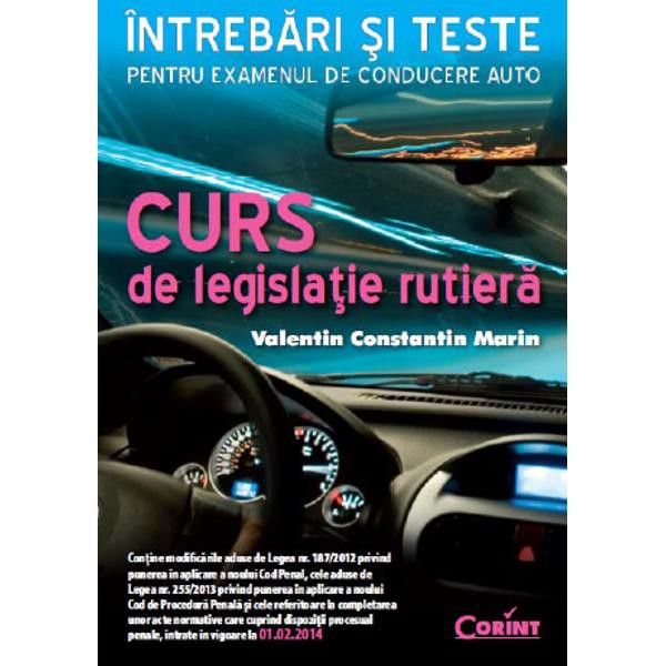 Conţine modificările aduse de Legea nr. 187/2012 privind punerea în aplicare a noului Cod Penal, cele aduse de Legea nr. 255/2013 privind punerea în aplicare a noului Cod de Procedură Penală şi cele referitoare la completarea unor acte normative care cuprind dispoziţii procesual penale, intrate în vigoare la 01.02.2014 „Pentru a veni în întâmpinarea dorinţei candidaţilor de a promova examenul pentru obţinerea categoriilor AM, A1, A2, A şi a categoriei B, a fost elaborat prezentul curs în care veţi primi informaţiile necesare, cu explicaţiile de rigoare structurate într-o succesiune logică, făcând astfel din învăţat o activitate plăcută şi accesibilă tuturor. De remarcat este faptul că s-a procedat la explicarea indicatoarelor rutiere, alăturând semnificaţiei acestora obligaţiile care revin conducătorilor auto la întâlnirea lor, contribuind astfel la formarea conduitei necesare în trafic, ceea ce reprezintă un atu important în alegerea acestei lucrări faţă de cele deja existente pe piaţă, care se rezumă doar la prezentarea normelor rutiere şi asimilarea lor prin rezolvarea de teste. Avem convingerea că lucrarea de faţă vă va fi de un real folos pentru promovarea examenului de ţinere a permisului de conducere şi o considerăm, totodată, un ghid util, pe viitor, pentru orice conducător auto. Este un volum care merită pe deplin să fie răsfoit şi analizat pentru diverse situaţii din trafic, reprezentând o lectură vie, incitantă, şi nu o carte abandonată într-un sertar, printre alte obiecte inutile.”