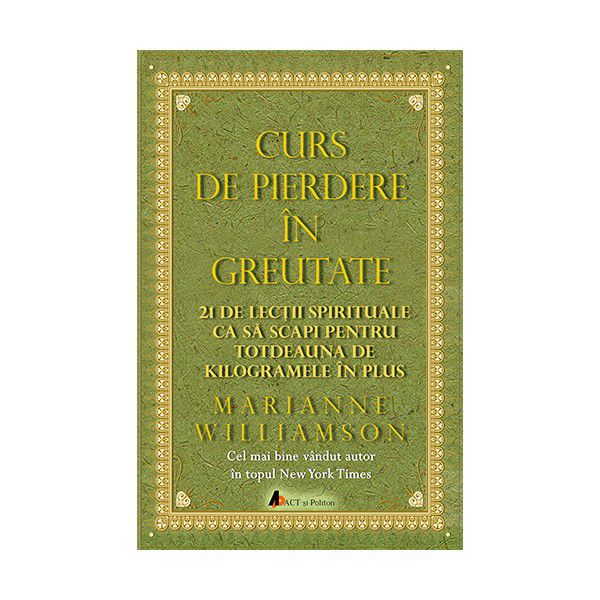 ACT şi Politon vă prezintă, în premieră în limba română "Curs de pierdere în greutate" (A course in weight loss), un best seller New York Times al autoarei Marianne Williamson, care abordează pierderea în greutate dintr-o perspectivă holistică, integrând elemente de natură spirituală, emoțională și psihologică, scopul fiind ceea ce Williamson numește „pierderea conștientă în greutate‟.