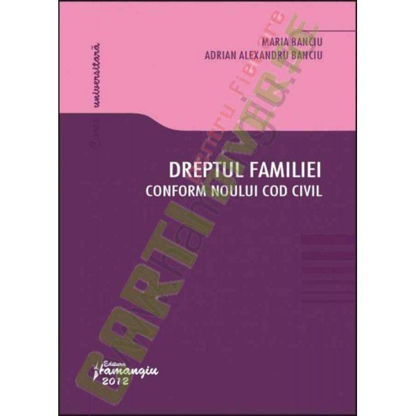 Folosind un limbaj accesibil oricarui cititor, speram ca lucrarea sa atraga studentii si orice persoana interesata sa patrunda in tainele noului tip de relatii de familie si sa retina mesajul transmis in promovarea unor valori morale pe care trebuie construita familia – ca institutie juridica si ca forma specifica fundamentala de comunitate umana.