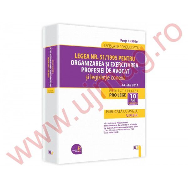 Culegerea prezinta o selectie a celor mai importante acte normative care reglementeaza profesia de avocat (inclusiv examenele precum cele de primire in profesie, definitivat etc.), semnaland si ultimele modificari aduse prin Decizia Curtii Constitutionale nr. 297/2014 (M. Of. nr. 521 din 14 iulie 2014).