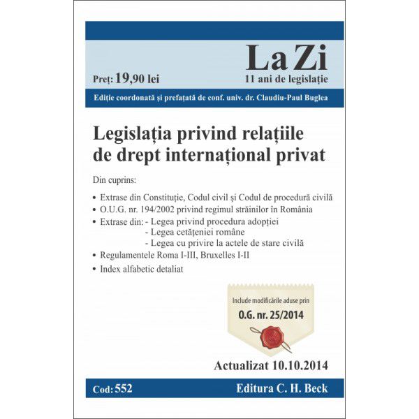 Legislatia privind relatiile de drept international privat. Cod 552. Actualizat la 10.10.2014