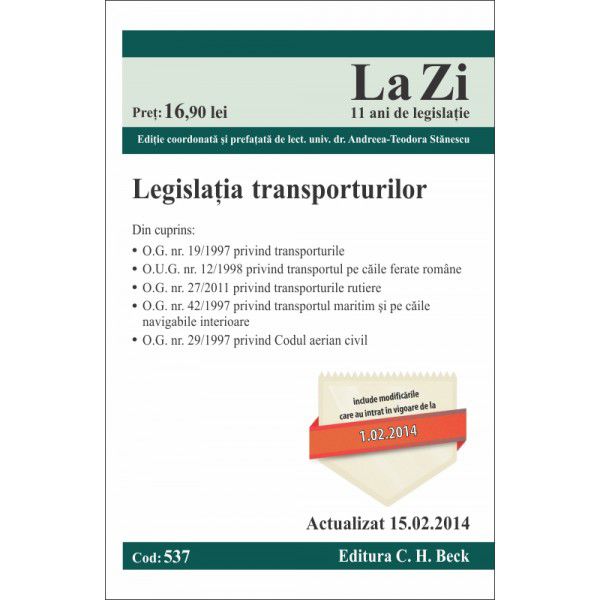 Legislatia transporturilor. Cod 537. Actualizat la 15.02.2014