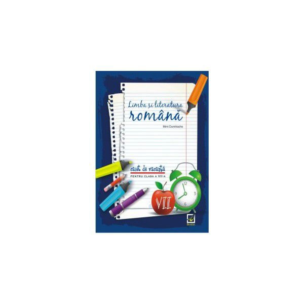 Caietul de vacanta pentru clasa a VII-a a fost realizat pentru a le oferi elevilor posibilitatea de a isi exersa abilitatile dobandite pe parcursul anului scolar, printr-o modalitate placuta, cu exercitii creative si lecturi interesante. Caietul este structurat pe 10 saptamani, cate o lectura pentru fiecare saptamana, propunandu-le elevilor activitati pentru fiecare zi: luni, lectura si intelegerea textului, marti, analiza textului, miercuri, exersarea cunostintelor de gramatica, joi, exercitii de creativitate, vineri, rezolvarea unui test construit dupa modelul Evaluarii Nationale si realizarea unei harti a lecturii. Aceasta structura ii va ajuta pe elevi sa-si organizeze mai bine timpul de lucru in vacanta de vara, fara a se simti suprasolicitati. De asemenea, cele 10 modele de teste pentru Evaluarea Nationala, îi vor ajuta sa se familiarizeze cu tipul de subiect si sa se pregateasca din timp pentru sustinerea acestui examen.