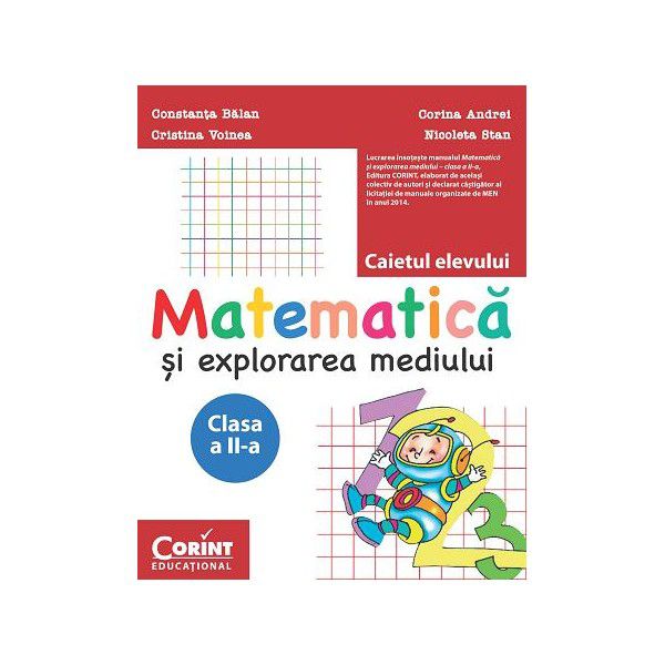 Lucrarea însoţeşte manualul Matematică şi explorarea mediului – clasa a II-a, Editura CORINT, elaborat de acelaşi colectiv de autori şi declarat câştigător al licitaţiei de manuale organizate de MEN în anul 2014.