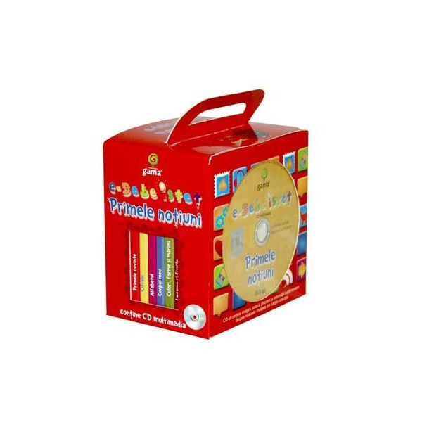 Cadoul conţine un set de şase cărticele cartonate şi un CD, ambalate într-o gentuţă practică. Cu ajutorul ilustraţiilor din cărţi, copiii vor învăţa primele cuvinte, cifrele, alfabetul, culorile, formele şi mărimile, legumele şi fructele sau părţile corpului uman (din pachetul „Primele noţiuni”). Pe CD-ul multimedia ce însoţeşte fiecare gentuţă veţi găsi explicaţia noţiunilor descrise în imagini, precum şi versuri şi ghicitori simpatice, în lectura actriţei ieşene Haruna Condurache.