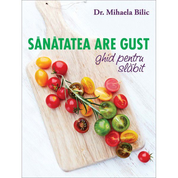 Sanatatea are gust …e acum mai ușor de citit, mai accesibilă, mai prietenoasă. Din cartea mare și complexă pe care o știți, au rezultat trei ghiduri: pentru slăbit, pentru familie și pentru oameni activi. Acestea conțin, pe lângă informațiile deja existente, capitole noi și sfaturi practice care să vă ajute să faceți din mâncare un sprijin, un aliat, o sursă de sănătate. Ghidul pentru slăbit este primul din această serie și vă oferă o metodă originală de a scăpa de obsesia dietelor și a kilogramelor în plus: psihonutriția. Instrumentul de lucru pe care vi-l propun este un jurnal emoționalo-alimentar, cu ajutorul căruia să identificați rolul pe care mâncarea îl are în viața voastră, astfel încât să reușiți să slăbiți mâncând orice… dar cu măsură! Întrebarea reală, apropo de kilogramele în plus, nu este „CE să mănânc?“, ci „DE CE mănânc?“. Foamea sufletului, agitaţia minţii, mâncatul emoțional ori nevoile neidentificate și nesatisfăcute îngrașă, nu pâinea sau dulciurile. Kilogramele în plus sunt o boală a sufletului – aveți grijă de el și veți slăbi definitiv! Iar pentru mai mult ajutor, vă promit în curând un caiet vesel, interactiv, plin cu sugestii de meniuri, curiozități și echivalente alimentare, pe care voi să-l completați și să-l transformați în propriul jurnal de slăbit. Când e vorba de slăbit, toată lumea se întreabă cu disperare: „Ce să mănânc?“. Căutăm în exterior, în reviste, la prieteni sau pe internet o formulă secretă, miraculoasă sau doar nouă, pe care n-am încercat-o, care să ne scape de kilogramele în plus. Suntem dispuşi să renunţăm cu totul la obiceiurile noastre, să mâncăm produse care nu ne plac, să disociem, să interzicem, într-un cuvânt să renunţăm, şi să ne transformăm viaţa într-un chin pentru că, nu-i aşa, cine nu suferă nu slăbeşte. Vă invit să reconsiderați această atitudine extremistă în raport cu mâncarea și să vă gândiți, măcar pentru o clipă, la ce i-ar face bine corpului vostru, de ce anume are el nevoie cu adevărat. Înlocuiți cantitatea cu calitatea și învățați să mâncați cu simțurile, nu cu mintea. Vă propun o reeducare a comportamentului alimentar care să țină cont de foame, de pofte și de plăcerea gustului. Adoptați moderația ca soluție unică și definitivă pentru silueta și sănătatea voastră. Veți descoperi astfel care este diferența dintre hrana pentru corp și cea pentru suflet și veți vedea că nimic nu îngrașă, dacă este consumat cu măsură. Mizați pe echilibru, relaxare, încredere, atenție, răbdare și grijă reală pentru propria persoană, în loc de război, interdicții și frustrări. Învățați să vă bucurați cu adevărat de mâncare, asta vă propun! Prezentul ghid conţine informaţii care se regăsesc parţial în volumul Sănătatea are gust – carte de nutriţie pentru familie. O parte dintre capitole au fost extrase, adaptate şi completate, astfel încât cartea de faţă să devină un îndrumar practic şi uşor de urmat, pentru cei care vor să slăbească. Informațiile incluse în această carte au caracter general și corespund teoriei și practicii medicale actuale recunoscute pe plan național și internațional. Sfaturile şi recomandările nutriționale sunt adresate atât persoanelor sănătoase, cât și celor care suferă de diverse afecțiuni, însă nu pot înlocui un consult medical de specialitate. Dr. Mihaela Bilic Absolventă a Facultăţii de Medicină din Bucureşti, dr. Mihaela Bilic este de 15 ani medicul nutriţionist care vrea să aducă din nou bucuria şi plăcerea pe mesele românilor. Autoare a unor cărţi de succes, vândute în mii de exemplare (Silueta dincolo de mituri, Trăiesc, deci mă abţin, Sănătatea are gust), şi promotor al multor campanii de educaţie nutriţională, Mihaela Bilic şi-a propus să le redea oamenilor încrederea în mâncare, să arate că sănătatea are gust! Prin intermediul numeroaselor emisiuni tv la care a fost invitată, dar şi în cadrul conferinţelor şi seminariilor pentru publicul larg, sfaturile şi recomandările ei au ajuns în multe case şi au ajutat mulţi români. De pe poziţia de medic primar diabet şi boli de nutriţie la care s-a adăugat un masterat de psihonutriţie la Paris, Mihaela Bilic ne îndeamnă să facem din mâncare un prieten şi din alimentaţia sănătoasă şi echilibrată un stil de viaţă!